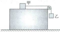 [例 5] (2025·安徽卷)如图,装有轻质光滑定滑轮的长方体木箱静置在水平地面上,木箱上的物块甲通过不可伸长的水平轻绳绕过定滑轮与物块乙相连。乙拉着甲从静止开始运动,木箱始终保持静止。已知甲、乙质量均为 $1.0\ kg$,甲与木箱之间的动摩擦因数为 $0.5$,不计空气阻力,重力加速度 $g$ 取 $10\ m/s^2$,则在乙下落的过程中 (