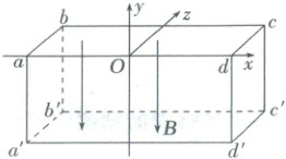 如图所示,以长方体 $abcd - a'b'c'd'$ 的 $ad$ 边中点 $O$ 为坐标原点、$ad$ 方向为 $x$ 轴正方向、$a'a$ 方向为 $y$ 轴正方向、$ab$ 方向为 $z$ 轴正方向建立 $Oxyz$ 坐标系,已知 $Oa = ab = aa' = L$。长方体中存在沿 $y$ 轴负方向的匀强磁场,现有质量为 $m$、电荷量为 $q$ 的带正电粒子(不计重力),从 $O$ 点沿 $z$ 轴正方向以初速度 $v$ 射入磁场中,恰好从 $a$ 点射出磁场。