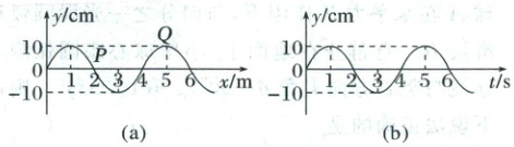 9.(2025·山东押题卷)一列简谐横波沿$x$轴传播,$t = 2\ s$时的波形图如图(a)所示,在波的传播方向上有两质点$P$、$Q$,平衡位置的横坐标分别为$x_P = 2\ m$、$x_Q = 5\ m$,$P$的振动图像如图(b)所示。下列说法正确的是(