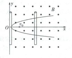 (多选)(2025·湖南卷)如图,关于$x$轴对称的光滑导轨固定在水平面内,导轨形状为抛物线,顶点位于$O$点。一足够长的金属杆初始位置与$y$轴重合,金属杆的质量为$m$,单位长度的电阻为$r_0$。整个空间存在竖直向上的匀强磁场,磁感应强度为$B$。现给金属杆一沿$x$轴正方向的初速度$v_0$,金属杆运动过程中始终与$y$轴平行,且与电阻不计的导轨接触良好。下列说法正确的是(