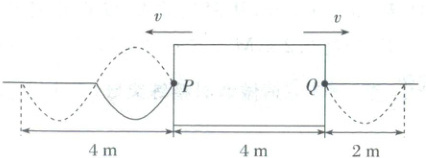 [例4](2025·云南卷)如图所示,均匀介质中矩形区域内有一位置未知的波源。$t = 0$时刻,波源开始振动产生简谐横波,并以相同波速分别向左、右两侧传播,$P$、$Q$分别为矩形区域左右两边界上振动质点的平衡位置。$t = 1.5$s和$t = 2.5$s时矩形区域外波形分别如图中实线和虚线所示,则(