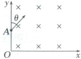 6.如图所示,空间中存在一平面直角坐标系$ xOy $,其第一象限内存在方向垂直纸面向里的匀强磁场。将一带负电的粒子从$ y $轴上的$ A(0,a) $点以一定初速度沿着与$ y $轴正半轴成$ \theta = 45^{\circ} $的方向射入磁场,经磁场偏转后,粒子从$ x $轴上的$ C $点垂直$ x $轴离开磁场。已知磁感应强度大小为$ B $,粒子的比荷和电荷量分别为$ k $、$ q $,粒子的重力不计。下列说法正确的是 (