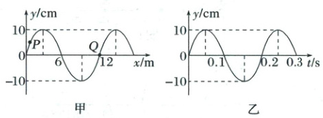 [例8](2025·湖北宜荆一模)图甲是一列简谐横波在$t = 0.1$s时刻的波形图,$P$是平衡位置在$x = 1.5$m处的质点,$Q$是平衡位置在$x = 12$m处的质点;图乙为质点$Q$的振动图像,下列说法正确的是(