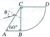 可得$\theta_{2} = 30^{\circ}$,则折射光线与$AB$平行,