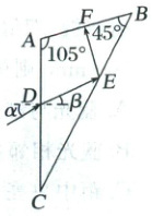1. (2025·湖南永州三模)如图所示为三棱镜的截面 $ \triangle ABC $,$ \angle A = 105^{\circ} $、$ \angle B = 45^{\circ} $。某细单色光束从 $ AC $ 边上的 $ D $ 点射入三棱镜,折射光线射到 $ BC $ 边上的 $ E $ 点,刚好发生全反射,反射光线垂直射到 $ AB $ 边的 $ F $ 点,光线在 $ D $ 点的入射角为 $ \alpha $,折射角为 $ \beta $,已知 $ B $、$ E $ 两点之间的距离为 $ L $,$ \sin 15^{\circ} = \frac{\sqrt{6} - \sqrt{2}}{4} $,光在真空中的传播速度为 $ c $,下列说法正确的是(