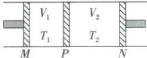 [例 4](多选)(2025·河南卷)如图,一圆柱形汽缸水平固置,其内部被活塞$M$、$P$、$N$密封成两部分,活塞$P$与汽缸壁均绝热且两者间无摩擦。平衡时,$P$左、右两侧理想气体的温度分别为$T_{1}$和$T_{2}$,体积分别为$V_{1}$和$V_{2}$,$T_{1} \lt T_{2}$,$V_{1} \lt V_{2}$。则(