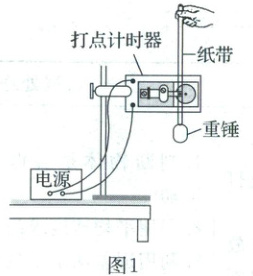 实验小组利用图 1 所示装置验证机械能守恒定律。可选用的器材有:交流电源(频率 $ 50 \, Hz $)、铁架台、电子天平、重锤、打点计时器、纸带、刻度尺等。