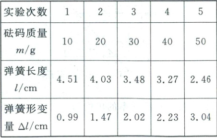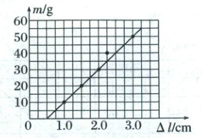 (1) 依据测量数据画出 $ m - \Delta l $ 图像如下图所示,观察图像可发现,其中第