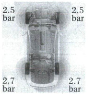 4.(2025·重庆南开中学二模)某天早上温度为10 °C,物理老师刚启动汽车时看到汽车仪表盘显示各轮胎压强如图所示,中午刚启动汽车时看到后轮压强变成了2.8 bar(1 bar=100 kPa),该过程认为轮胎内的体积不变,轮胎内部气体可看成理想气体,下列说法错误的是 (