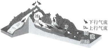 (1)题,由图可知,下行气流来自海拔较高的冰川表面,温度较低,上行气流来自低海拔地区,温度较高,两股冷暖性质不同的气流在P地附近相遇,容易形成锋面,可能给P地带来降水,使该地局地降水概率增加,C正确;降水增加导致冰面流水作用增强,B错误;冷暖气流相遇,暖气流抬升,大气上升气流增强,A错误;下行风为冰川风,与焚风效应无关,D错误。第