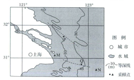 (2025·浙江6月选考)下图为长江口简图,图中虚线表示沟槽或隆脊。研究人员测定M、N两点2月和8月的海面水体盐度;在P、Q两地采集海底表层沉积物并测定年代,测得P地距今约1千年,Q地为现代沉积。完成(1)~(3)题。