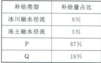 (2025·山东淄博期末)阿牙克库木湖是阿尔金山与昆仑山之间内陆流域的一个大型咸水湖,流域面积20 000平方千米,1990-2023年,受气候变化影响,流域内冰川面积缩小,湖泊面积从623平方千米扩大到1 141平方千米(P补给增大是主要原因)。湖冰完全覆盖开始日期呈现提前趋势。下表示意阿牙克库木湖水源补给类型及其补给量占比。据此完成3~4题。