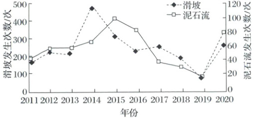 3. 2011—2020年云南省滑坡和泥石流的特点是(