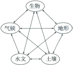 (2025·河北张家口一模)读地理环境各要素相互关系图,完成1~2题。