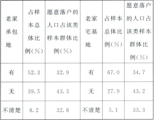 (2025·内蒙古赤峰三模)研究发现城镇农业转移人口市民化意愿与其老家是否拥有承包地和宅基地息息相关。下表为我国城镇农业转移人口市民化意愿调查数据。据此完成3~4题。