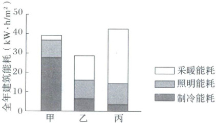 4. 甲、丙城市南向墙面的最优窗墙比分别为0.27和0.56。甲城市最优窗墙比小于丙城市的原因是甲城市(