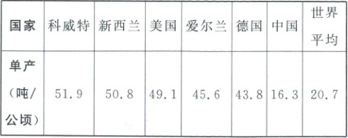 (2025·浙江1月选考)马铃薯具有耐旱、耐寒和耐瘠的习性。将马铃薯列为主粮有利于保障我国粮食安全。如表为2021年世界部分国家马铃薯单产比较表。完成(1)~(2)题。