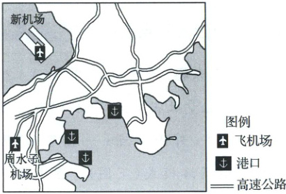 (2025·山东德州二模)大连周水子机场建于1927年,是国内极少数位于市区的机场。而在建的新机场位于大连金州湾东部海域,建成后将成为世界最大的离岸式“人工岛”机场(如下图)。大连市将围绕新机场构建临空产业集聚区,助力区域经济发展。据此完成3~4题。