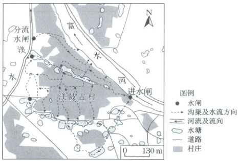 (3)题,渼陂古村在治水过程中合理利用微地形和天然水体,不仅最大程度地避免了对环境的破坏,减少了水利建设的工程量,同时还营造出古村内起伏有致的水体景观,充分体现了因地制宜的生态治水智慧,因此,古村治水模式对生态建设的启示是“因地制宜治水,合理利用自然”,B正确。古村在治水过程中并没有广泛植树种草,其治水核心是水系改造工程而非生物治理,A错误。试题材料中给出街巷的沟渠排水系统,并未区分污水与雨水处理;古村促进环境改善,主要是依靠水塘净化和流动水体向外排泄污水来实现的,C错误。水塘与水系是人工改造的成果,需适度干预而非完全放任,所以完全依靠自然恢复来抵御古村水患威胁是不可行的,D错误。故选B。