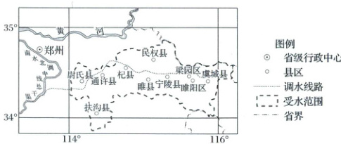 (3)题,该工程是调水工程,主要作用是增加水资源供给,不能直接解决水污染问题,水污染需要靠污水处理等措施,①错误;调水后,豫东地区可用地表水增加,能减少对地下水的开采,从而缓解地下水超采问题,②正确;调水是为了保障和优化供水,不是为了减少居民用水量,相反能保障居民用水,③错误;该工程从南水北调中线总干渠取水,增加了豫东地区的水源,有助于构建多水源(本地水+外调水等)供水格局,④正确。故选C。