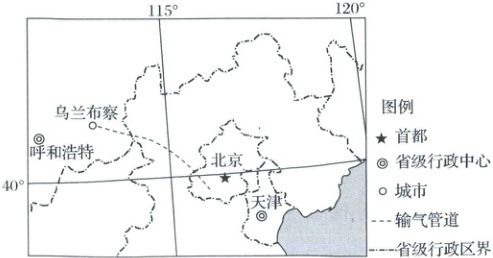 (2025·辽宁名校一模)近年来,内蒙古乌兰察布大力发展绿氢(用可再生能源发电来电解水制备的氢气)产业,规划中的“西氢东送”工程西起乌兰察布,终点位于北京燕山石化,管道全长400多公里,是我国首条跨省区、大规模、长距离的纯氢输送管道(如下图)。管道建成后,将用于替代京津冀地区现有的化石能源制氢及交通用氢。据此完成4~6题。