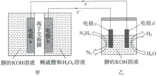 乙(电解池) 电极c 阳极 N₂H₄ + 4OH⁻ - 4e⁻ = N₂↑ + 2H₂O + 2OH⁻