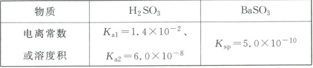 随着反应进行,溶液中H₂SO₃浓度增大,H₂SO₃以第一步电离为主,且电离程度微弱,故溶液中c(H⁺) ≈ c(HSO₃⁻),则$c(SO₃²⁻) ≈ \frac{c(H⁺)·c(SO₃²⁻)}{c(HSO₃⁻)} = K_{a2}(H₂SO₃) = 6.0×10⁻⁸mol·L⁻¹,$$Q(BaSO₃) = c(SO₃²⁻)·c(Ba²⁺) = 2.4×10⁻⁸ > K_{sp}(BaSO₃),$所以溶液中也会产生BaSO₃沉淀