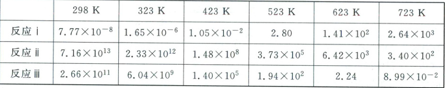 反应ⅰ、ⅱ、ⅲ在不同温度下的分压平衡常数Kₚ的数值如表2,回答下列问题: