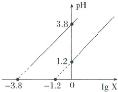 [分析] K_a1 = c(HC₂O₄⁻)c(H⁺)/c(H₂C₂O₄)、K_a2 = c(C₂O₄²⁻)c(H⁺)/c(HC₂O₄⁻),根据K_a1 > K_a2可知,当lgX = 0时,K_a1对应的c(H⁺)大,pH数值小,因此K_a1 = c(HC₂O₄⁻)c(H⁺)/c(H₂C₂O₄)=10⁻¹·²,K_a2 = c(C₂O₄²⁻)c(H⁺)/c(HC₂O₄⁻)=10⁻³·⁸,以此解题。