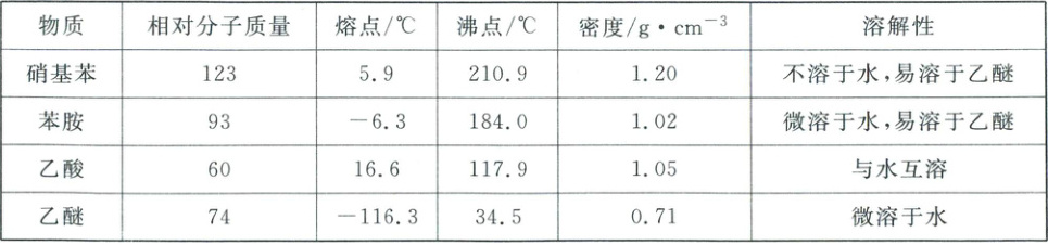15. (14分)苯胺是重要的有机化工原料,其实验室制备原理如下:
