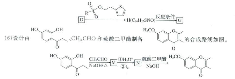 (5)为了减少步骤,缩短反应过程,$D\to G$也可由如下路线合成,结合题示合成路线分析下图中“反应条件”应为