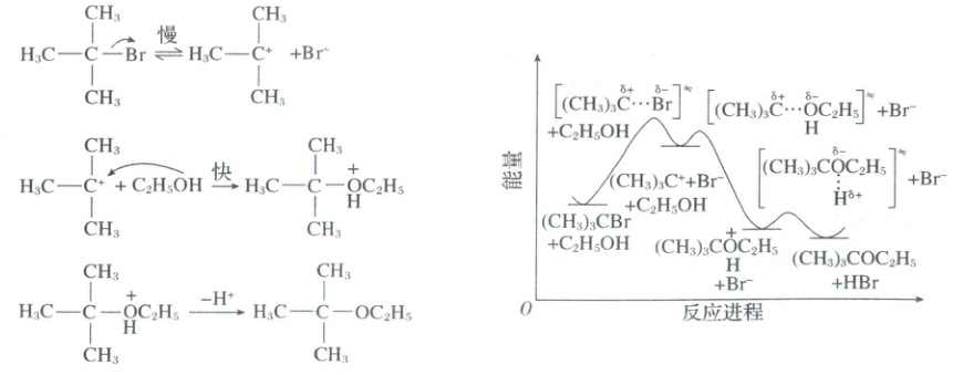 )A.三级溴丁烷在乙醇中的溶剂解反应属于取代反应