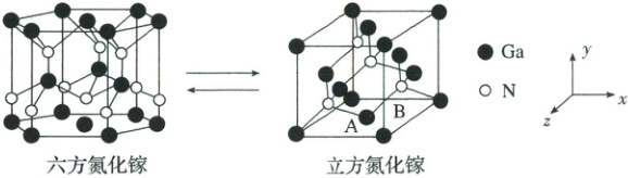 B.立方氮化镓中若B原子坐标为(3/4,1/4,1/4),则A原子坐标为(0,1/2,1/2)