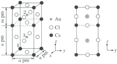 (3)由Au、Cs和Cl组成的晶胞属于四方晶系,结构如图所示,2、3为两种不同价态和化学环境的Au,m<a<n。则两种环境Au的配离子化学式分别为