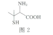 。(2)用青霉胺(见图2)可解铜盐中毒,青霉胺分子中S原子的轨道杂化方式为______;键角:H₂S______NH₃(填“>”或“<”);第二周期元素中,第一电离能大于N的元素有______(用元素符号表示);青霉胺易溶于水的主要原因为______。