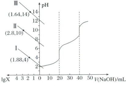 14.(2025·湖北·二模)25℃时,用NaOH标准溶液滴定20.00mL同浓度的三元酸(H₃A)溶液,滴定曲线及溶液中lg X[X代表c(A³⁻)/c(HA²⁻)、c(HA²⁻)/c(H₂A⁻)或c(H₂A⁻)/c(H₃A)]随pH变化曲线如图。下列说法正确的是(