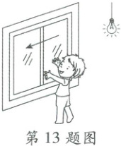 13. (双选)晚上,小明在客厅的窗户玻璃上看到了客厅里边灯的像和他自己的像,当他走近窗户并水平向左缓缓推动玻璃窗时,下列说法正确的是 (