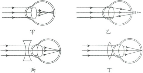 10. 人眼的屈光状态主要包括正视眼、近视、远视、散光、老视及屈光参差。下列四幅图中,属于远视眼及其矫正的是 (