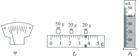调节平衡螺母,直到天平平衡。(2)向烧杯中倒入适量湛河水,将装有湛河水的烧杯放在已调平的天平左盘,向右盘中加减砝码并调节游码,天平再次平衡后,右盘中砝码和游码在标尺上的位置如图乙所示,则湛河水和烧杯的总质量为