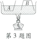 3. 如图所示,两个完全相同的玻璃杯A和B,A中装有一些水,B倒扣着放入盛水的容器中。用酒精灯给容器中的水加热,在水沸腾后继续加热的过程中,A、B杯中的水
