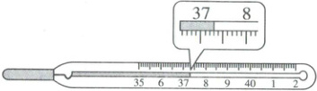 1. 如图所示, 用体温计测量体温, 该体温计的分度值是