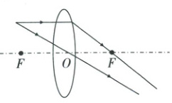 15. 请在下图中画出两条入射光线经过凸透镜后的折射光线。