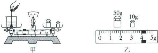 ③ 从烧杯中取出工艺品, 用天平测量其质量, 当天平平衡后, 右盘中砝码和游码的位置如图乙所示, 工艺品的质量为 $g$。