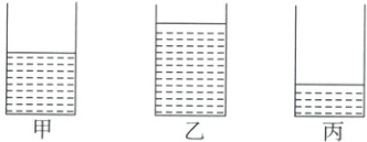 8. 如图所示,有三只相同的玻璃杯,盛有等质量的酒精,纯水,盐水 ($ρ_{盐水}>ρ_{纯水}>ρ_{酒精}$),则甲玻璃杯中的是 (