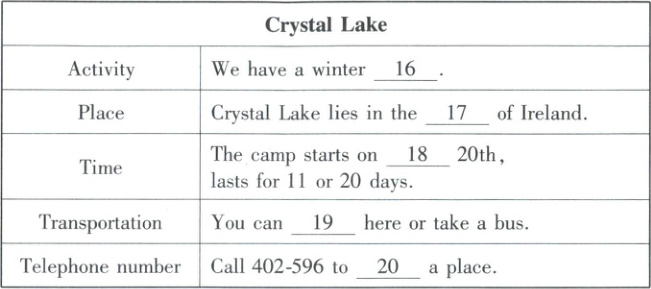第三节 你将听到一篇短文。请用你所听到的内容,填写表格中所缺单词,每空限填一词或一个数字。短文读两遍。