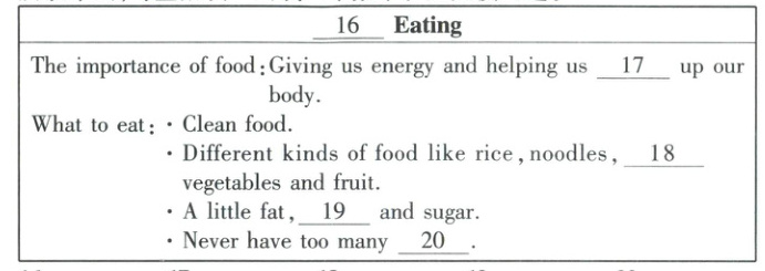 16.Healthy 17.build 18.fresh 19.salt 20.sweets