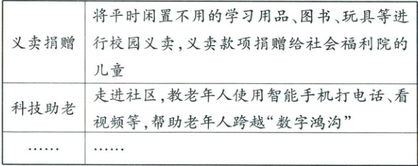 为了向同学们学习,汲取榜样力量,绽放青春光彩,小治所在的班级开展了以“认识社会”为主题的体验式学习。以下是同学们设计的活动方案: