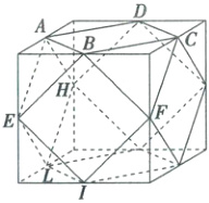 对于C,补全八个角构成一个棱长为$2\sqrt{2}$的一个正方体,如图,易知$LH// FC$,$FC$与$BC$所成角为$60^{\circ}$,所以直线$LH$与$BC$的夹角为$60^{\circ}$,C正确;对于D,由正方体易知:$DH// BE$,$LI// AB$,$AB$,$EB$所成角为$60^{\circ}$,所以$DH$,$LI$所成角为$60^{\circ}$,又$LI$在平面$LEI$内,所以$DH \perp$平面$LEI$不成立,故D错误.故选ABC.