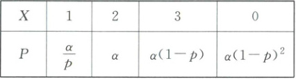 (2)(ⅰ)由$\frac{\alpha}{p}+\alpha+\alpha(1 - p)+\alpha(1 - p)^2=1$,得$\frac{1}{\alpha}=p^2 - 3p+\frac{1}{p}+3$,