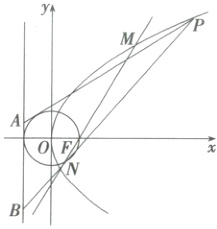 (2)设$P$是$C$上一点,$A,B$是$C$的准线上两个不同的点,且圆$x^{2}+y^{2}=1$是$\triangle PAB$的内切圆.